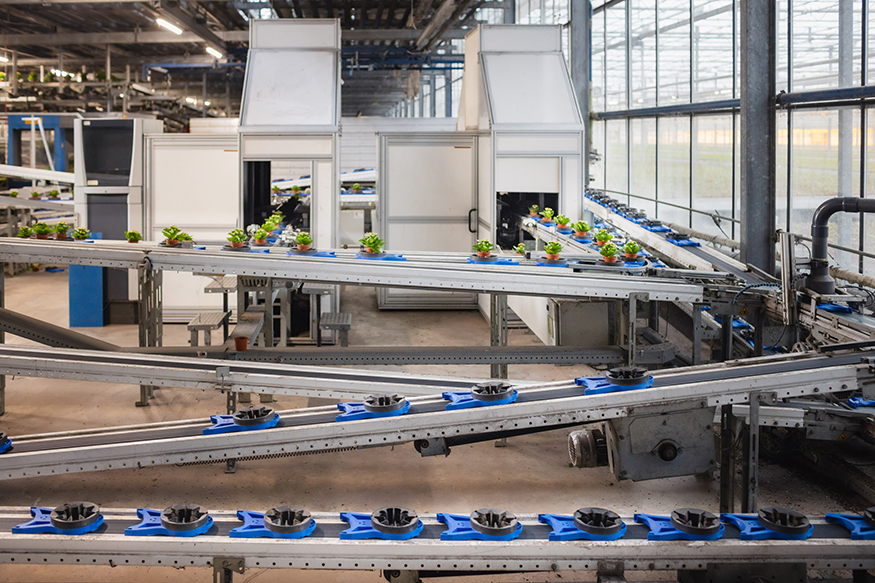 De OPD cleaner is een geïntegreerd onderdeel van het Plant Order System en ondersteunt een gesloten, hygiënisch logistiek proces. Lege Ovale Plant Dragers die vrijkomen na verwerking of inpakken worden automatisch afgevoerd naar dit schoonmaakstation.